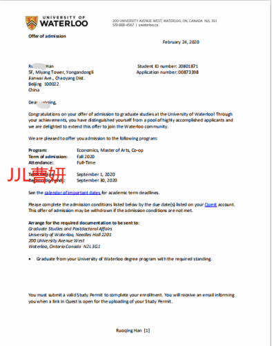 学生背景:国内二本院校,经济学专业,均分83,雅思7.0 申请多伦多大学,滑铁卢大学,西安大略大学,达尔豪斯大学,曼尼托巴大学
