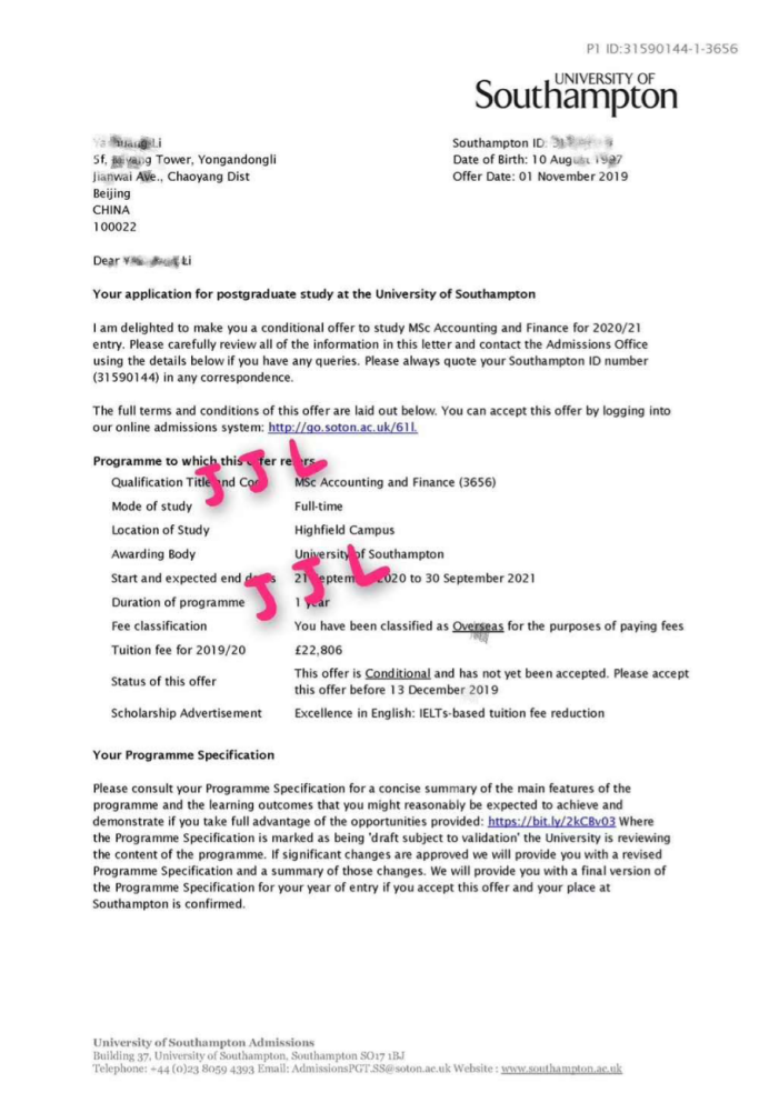 录取院校:谢菲尔德大学南安普顿大学玛丽女王大学