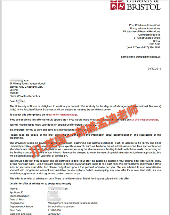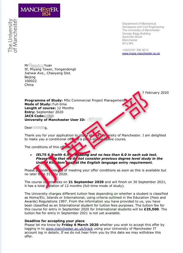 学生本科是国内双非院校,专业是国际商务,安徽财经大学对于安徽的院校来说,在英国的认可度还不错,比如布里斯托大学是认可安大的,学生成绩属于中等,因此布大属于平行院校,学生考虑院校排名,于是申请了曼彻斯特大学的商业项目管理,属于冲刺