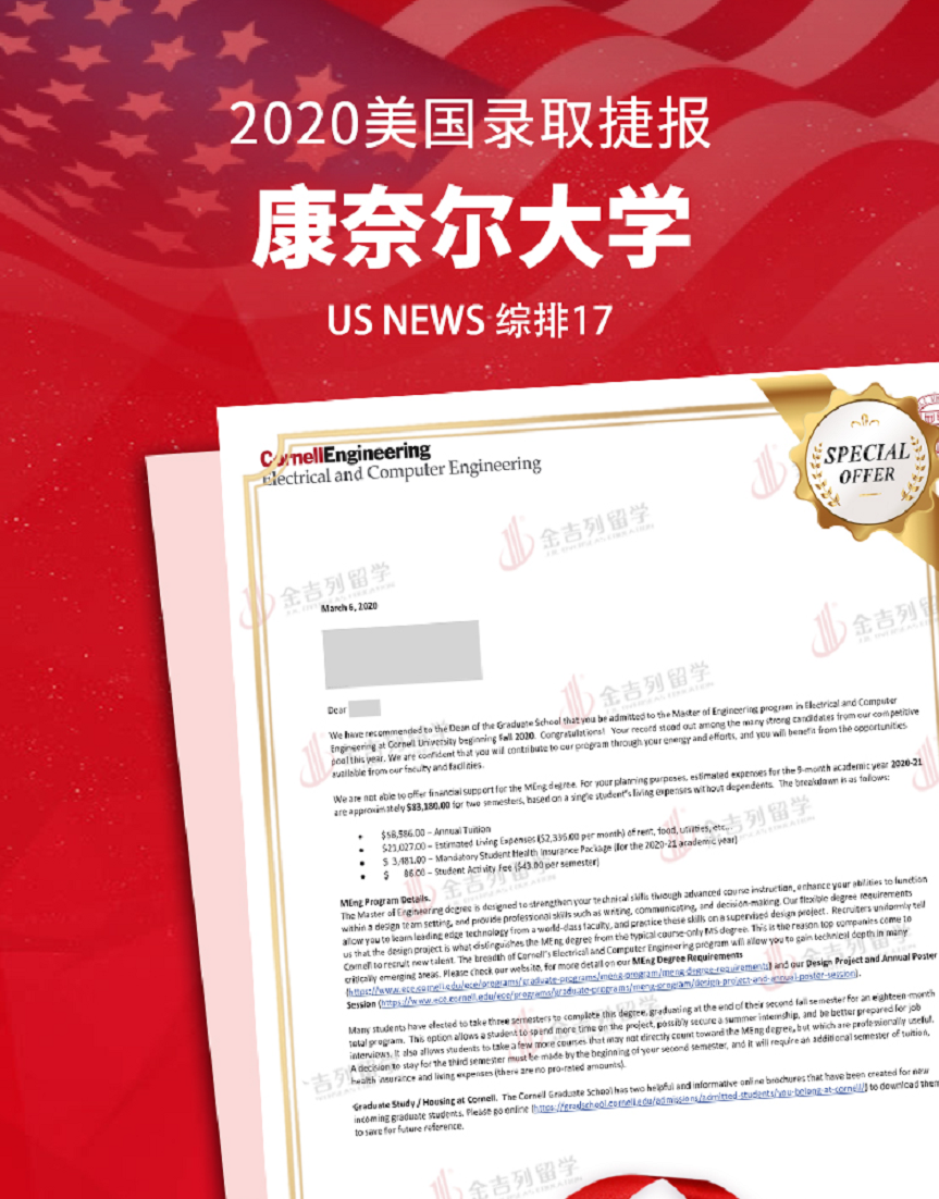 以上就是美国康奈尔大学ECE硕士的录取案例,更多关于美国留学的信息可在线咨询古老师。