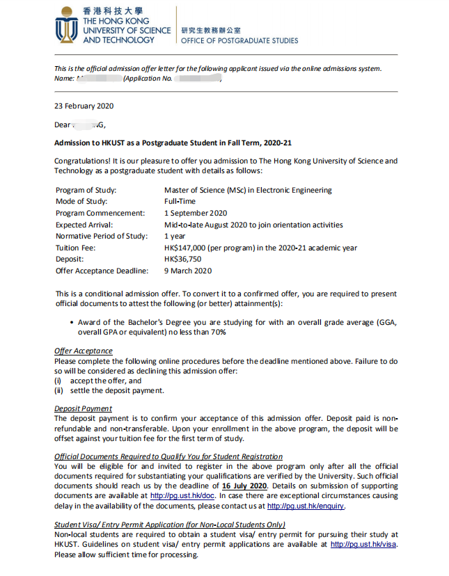 学生本科院校是211,专业是车辆工程,是本科院校的王牌专业,学生的本科均分不是很高,属于中等,但是由于工科对比商科来说竞争不是那么大,学生又有合格的雅思成绩,因此在申请的时候香港院校全部申请,港大作为冲刺院校,学校也给了预录取。