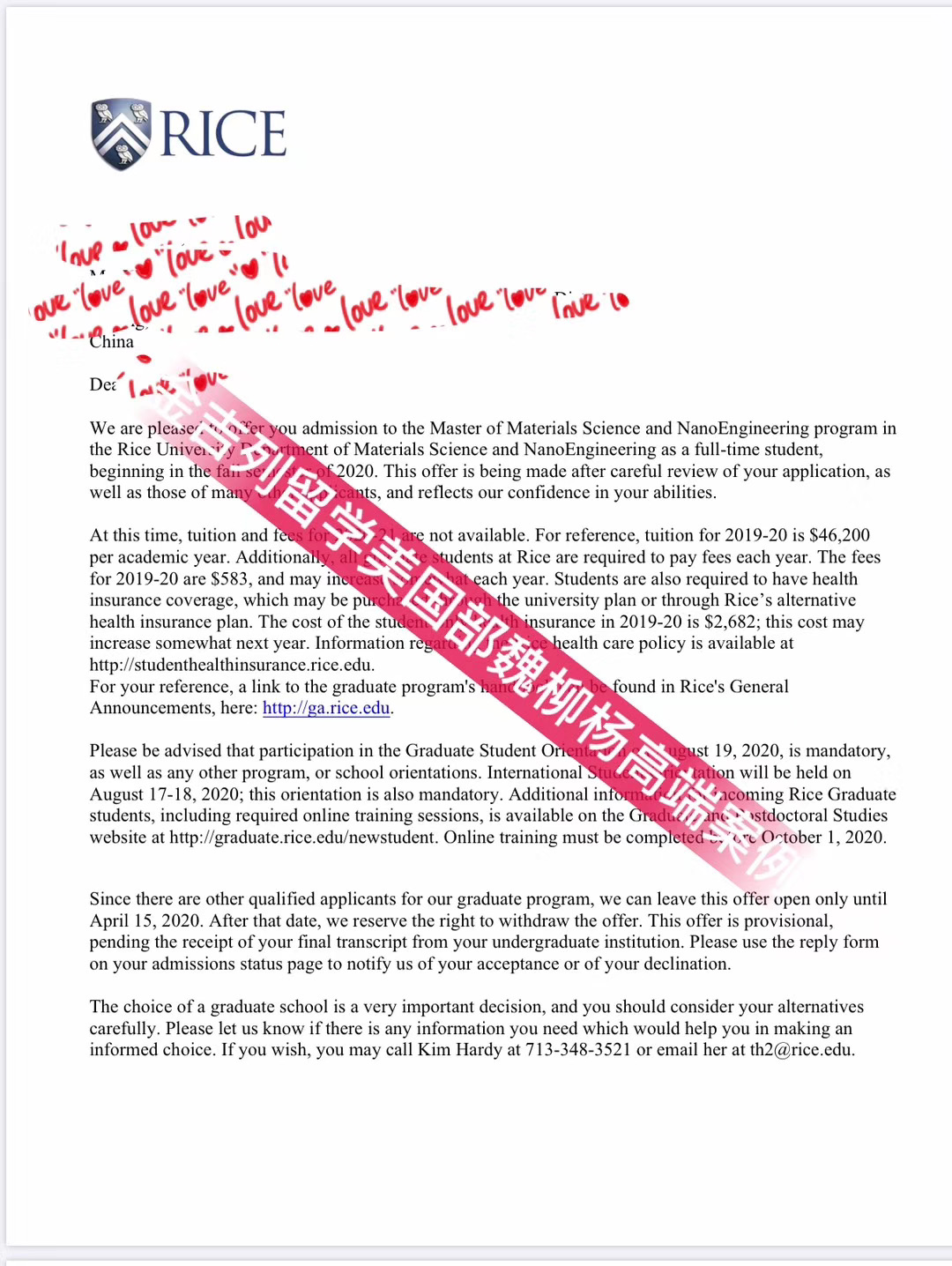 获得 offer 院校:莱斯大学