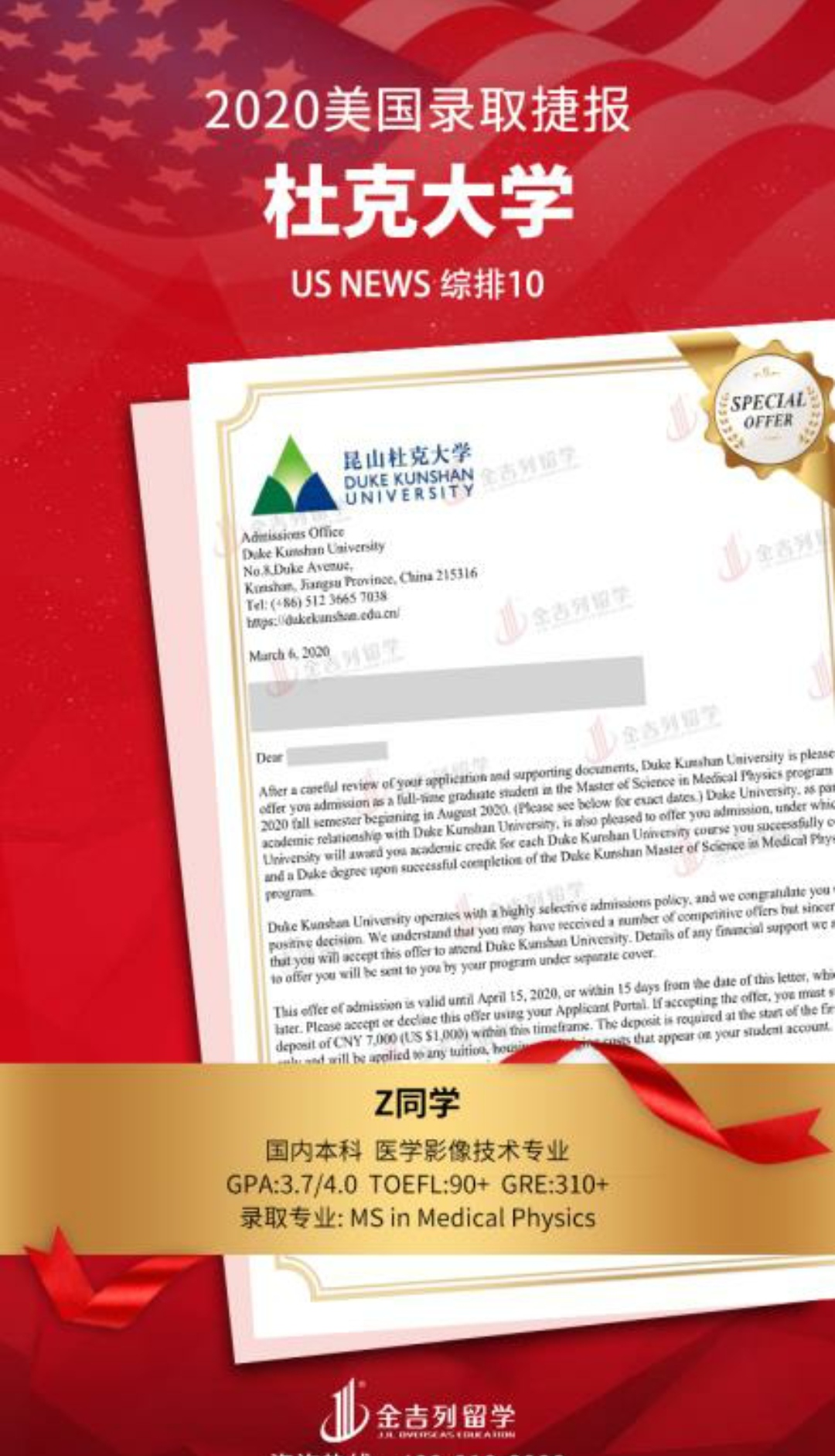 录取学校:杜克大学(昆山校区)