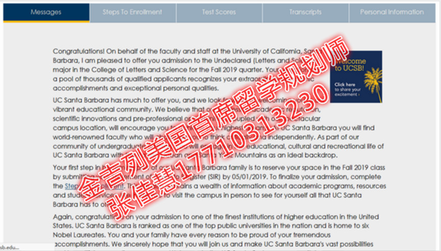 UCSB申请截止2018.11.30,递交申请2018.11.26,收到录取2019.3.20