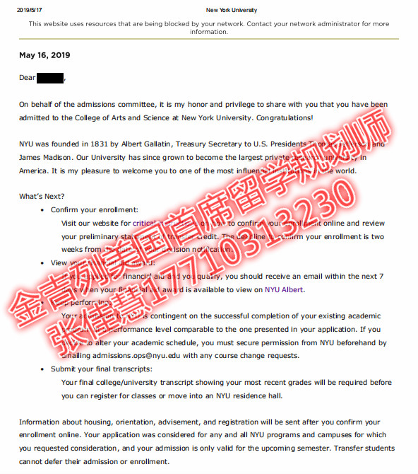 NYU: 申请截止2019.4.1,2019. 4.1递交申请,2019.5.16收到录取