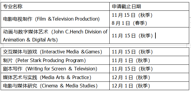 申请说明:南加州大学电影艺术学院(The school of Cinematic Arts )成立于1929年,是全国成立时间最早、规模最大的电影学院。2001年,该学院增加了一个互动媒体部主要是学习立体影院、全景影院、3D影院、互动影院、视频游戏、虚拟现实及移动媒体等;该学院录取率始终保持在4%-6%,电影专业全美排名第1。