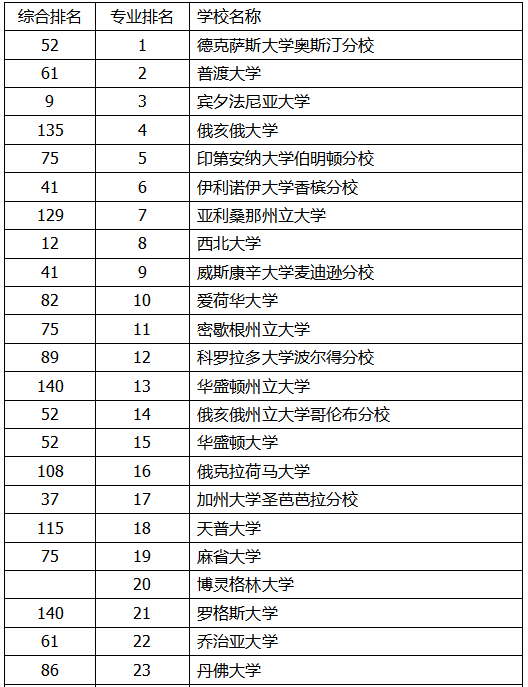 五、相关专业院校排名