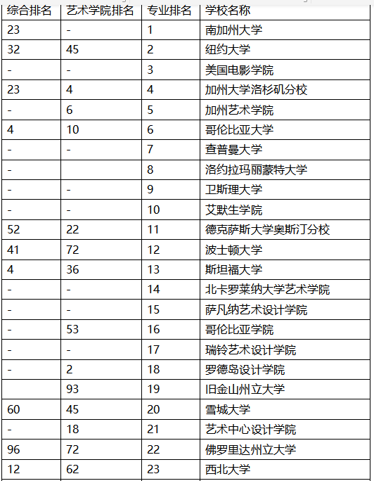 美国大学电影学院院校排名