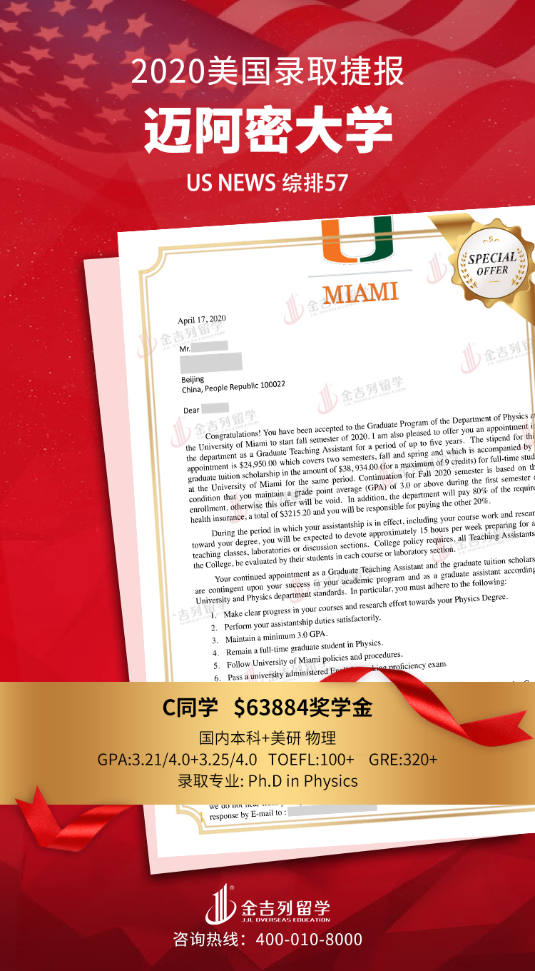 道阻且长,行则将至。2020年美国留学录取进行时,感谢各位同学和家长的支持、配合、理解和包容,感谢整个申请团队的辛苦付出。只要你足够优秀,我们会让你更优秀,最后也希望各位同学今后学业有成,事业有成!录取offer集锦仅包含美国本科、研究生和博士Top30以内高端院校录取数据,中学录取,本科及硕博Top30以后录取等除外,个人信息部分均已保护。可供今年和明年申请留学美国的同学参考,美国名校竞争激烈,申请难度大,早准备,早规划,早申请,早录取,结果一定不会差。