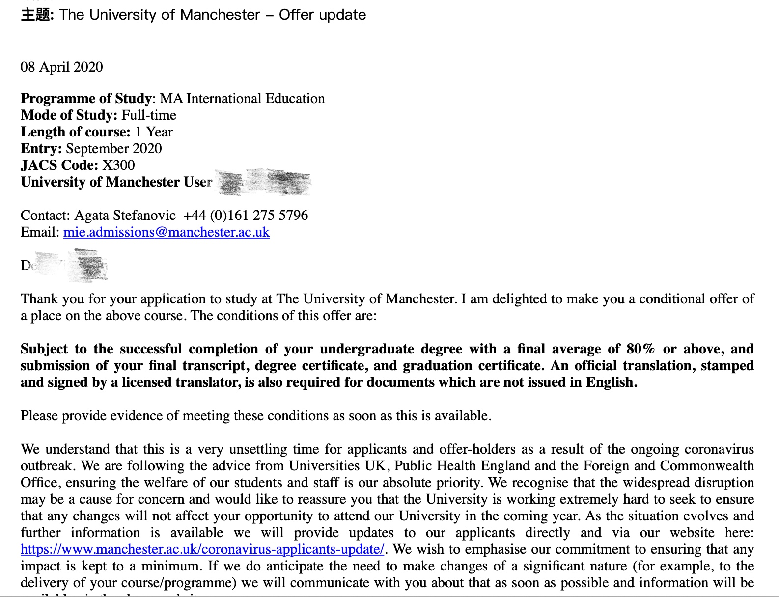 录取院校 :曼彻斯特大学,爱丁堡大学,格拉斯哥大学