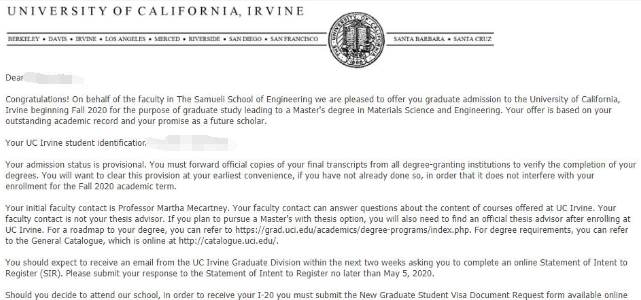 获得 offer 院校:全美33位的加州大学欧文