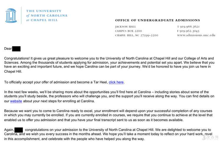 4、录取院校:University of California-Santa Barbara、University of North Carolina at Chapel Hill