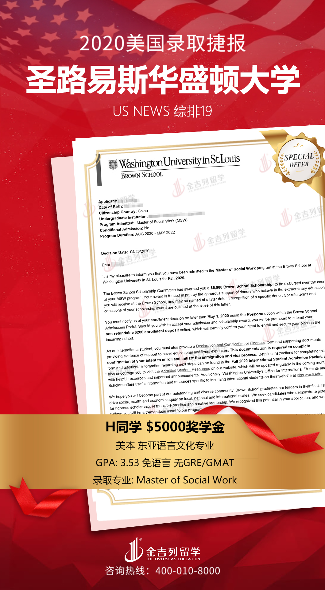 道阻且长,行则将至。2020年美国留学录取进行时,感谢各位同学和家长的支持、配合、理解和包容,感谢整个申请团队的辛苦付出。只要你足够优秀,我们会让你更优秀,最后也希望各位同学今后学业有成,事业有成!录取offer集锦仅包含美国本科、研究生和博士Top30以内高端院校录取数据,中学录取,本科及硕博Top30以后录取等除外,个人信息部分均已保护。可供今年和明年申请留学美国的同学参考,美国名校竞争激烈,申请难度大,早准备,早规划,早申请,早录取,结果一定不会差。