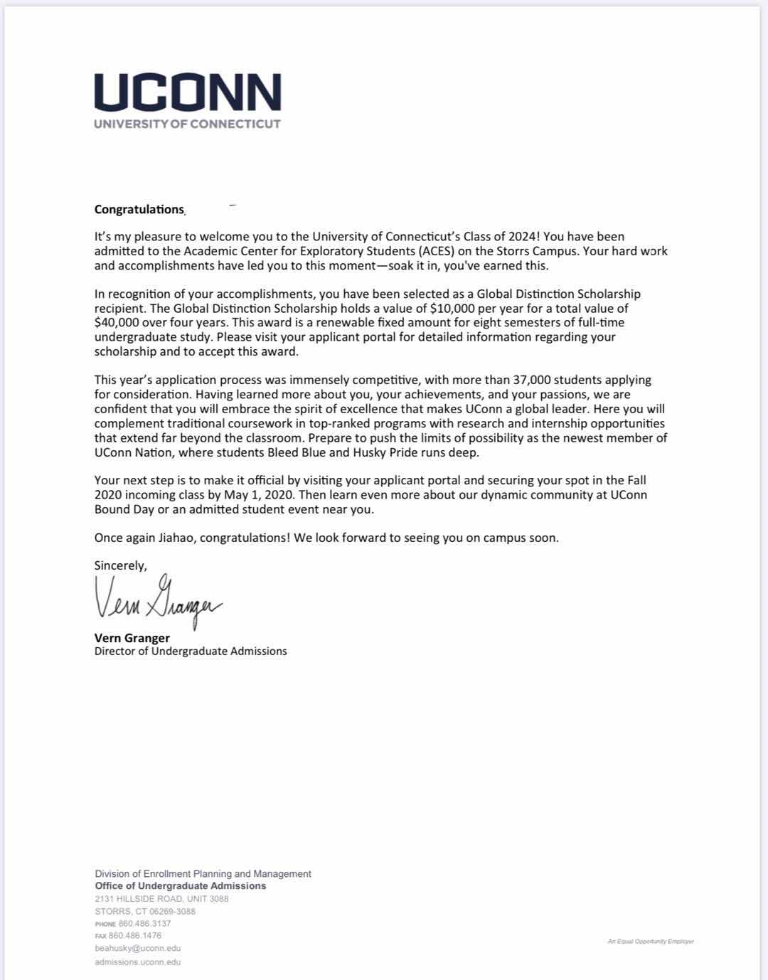 获得 offer 院校:全美前60位康涅狄格大学并获得28万人民币奖学金