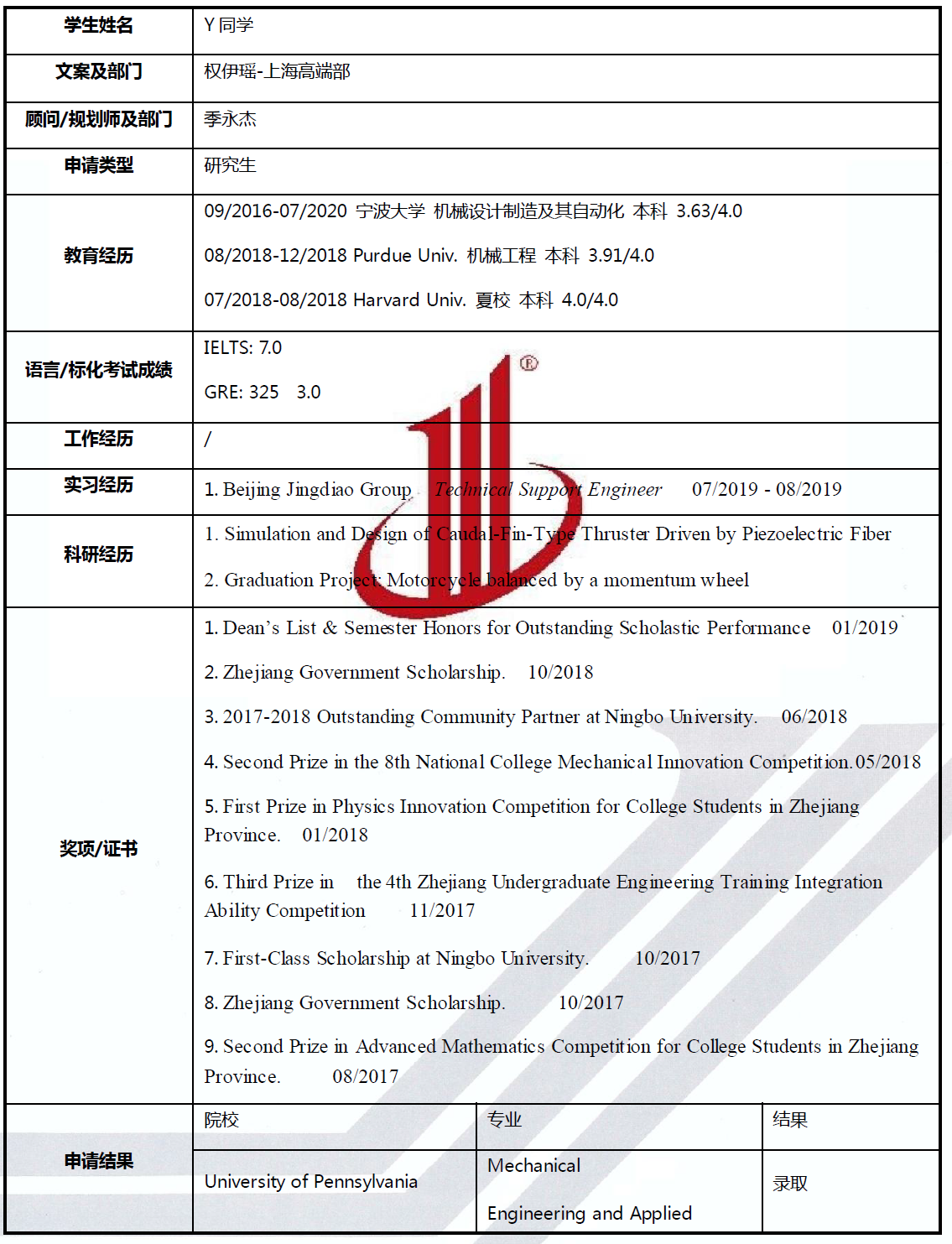 尤同学申请的是ME机械工程专业,至今我们未曾谋面~