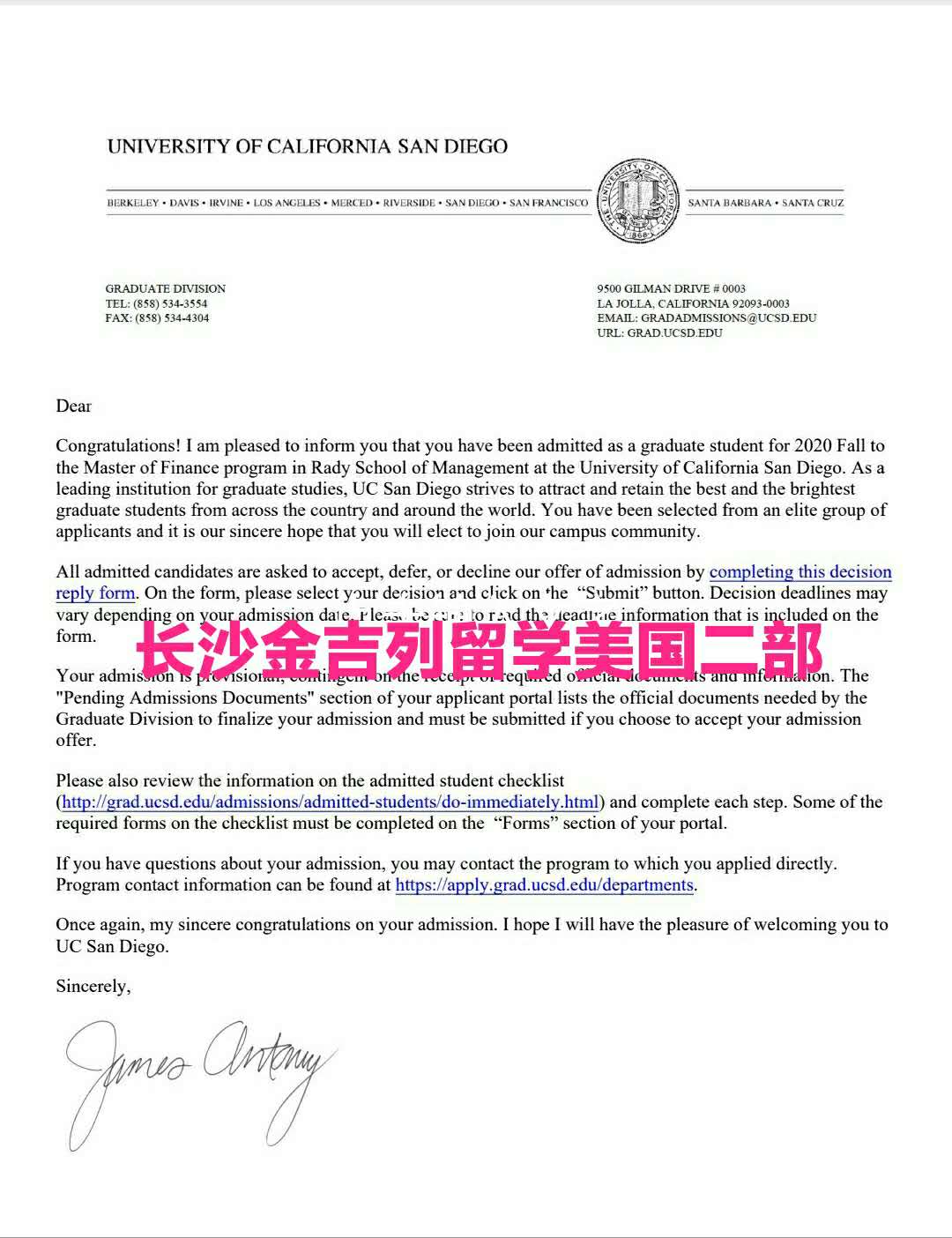 录取学校:加州大学圣地亚哥分校
