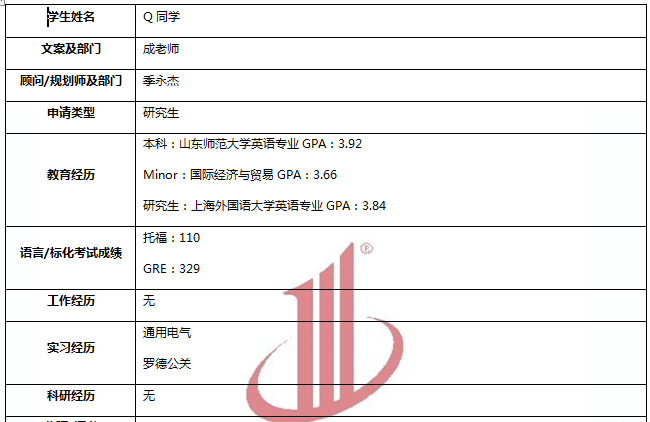 学生沟通能力比较好,想法有时候也比较多,主要就是沟通的比较多,对于学生也有了足够的了解,在对素材选择,以及文书撰写,修改上对内容就比较有把握。然后商科的面试还是很重要的