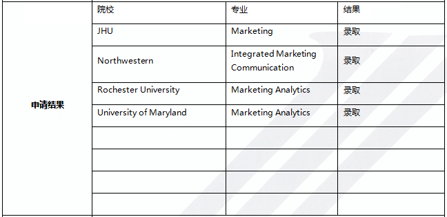 这个学生一开始的专业选择和职业道路比较模糊。因为本硕都是英语专业,其实并不是她喜欢的,只是因为当时读本科时成绩不错可以保研,她图省事就直接去了。后来某一次聊天时她和我说其实很后悔当时本科读完没有直接出国。她起初是在TESOL、MKT、MPP里考虑三选二,询问了一下,TESOL其实是她家里人想让她学的,她自己并不感兴趣,经过了一段时间考虑后就彻底放弃了。于是建议学生用这一年的实习去找定位,准备后面再做一段MKT,一段咨询岗来对比。后来又找到了通用的MKT实习岗,做了大半年时间,觉得MKT还是比较符合自己职业发展期望的。再加上一直也没找到合适的咨询岗实习,于是就准备直接申MKT。