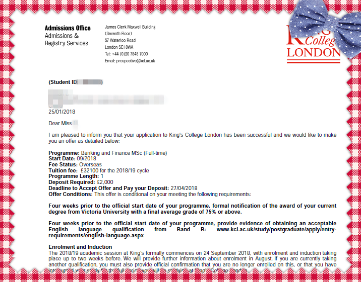 学生211大学毕业 金融专业,雅思6.5,伦敦大学国王学院和巴斯大学录取。