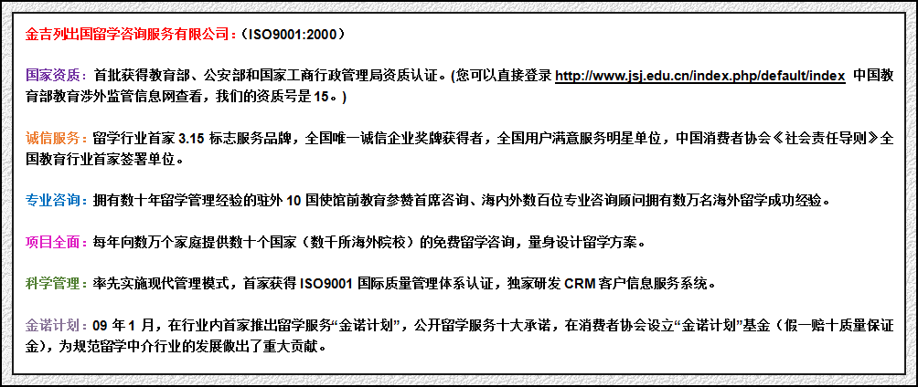 最近不少家长和学生都非常关注留学加拿大,留学性价比最高的国家,加拿大留学费用,如何出国留学,留学办理流程,世界大学排名,出国留学需要什么条件,小学,初中,中专,大专生,本科,研究生出国留学等信息,金吉列留学加拿大部宋老师为您提供 24 小时留学在线咨询