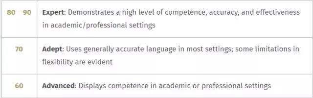 要求考生英语水平达到轻松、熟练地运用的程度。考生应该能够按照英语语言和文化习惯把英语恰当用于各种社交环境。要求考生在学习过程中可以培养起对于纪实性和小说类文章的阅读兴趣。能够进行多种体裁和题裁的写作,并能灵活地、创造性地使用较长和复杂的语言对可期和不可期的情况作出反应。参加该级别考试的考生能够在广泛的范围内开展社交活动。该级考试的通过者可以胜任管理层或专业技术工作并能参加大学课程的专业学习和学术研修。 ielts 考试 6.5-7.5 分, a 档跳级,最高能对应 ielts8.5 分。