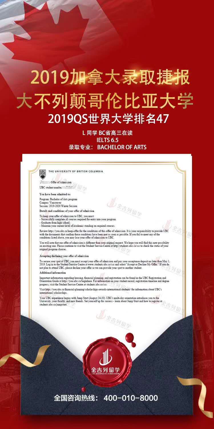 1 、学生平均分较低,咨询留学的时候平均分76,后来根据宋老师的要求和规划努力提高平均分,最终提高到81分。为了能确保ubc大学的录取,先申请了文学院;