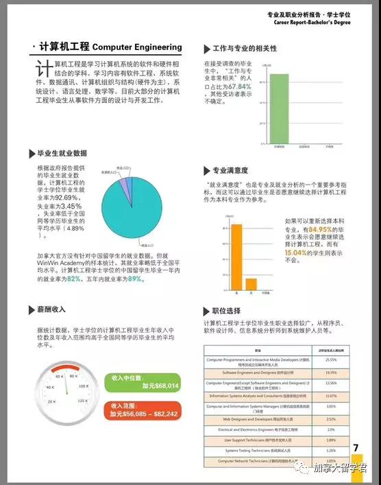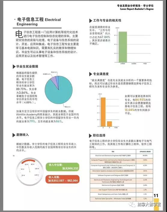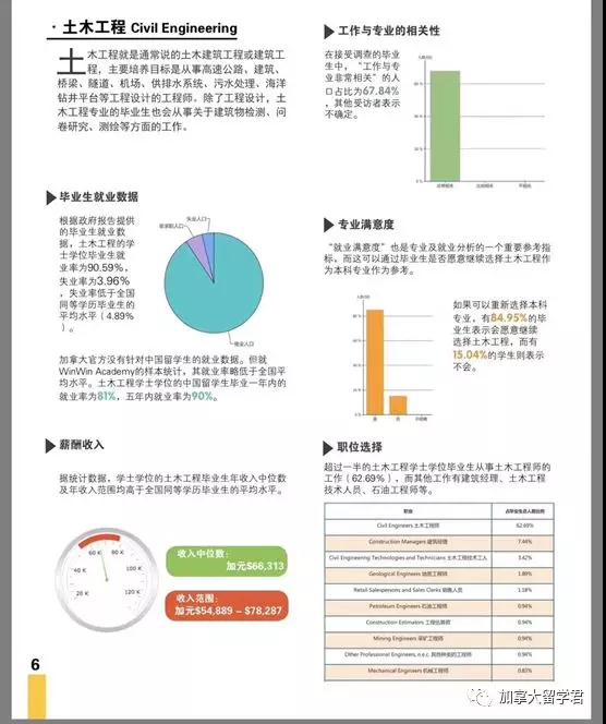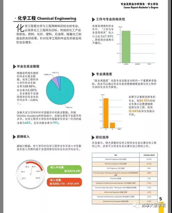 收入范围方面,大部分专业的年平均收入都集中在 5-8 万加元,而化学工程的最高均收入达到了 11 万加元 / 年