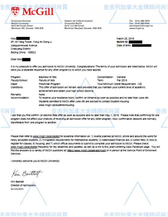 录取结果 : 麦吉尔大学 - 文学院