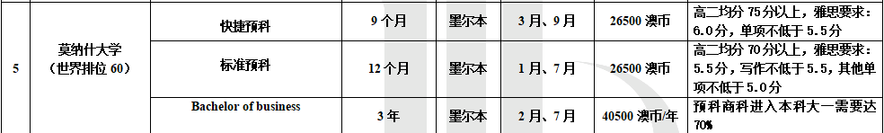蒙纳士大学是澳大利亚政府八所一流名校之一( Group of 8 ) , 其学位获得国际认可。在最新的全球前 100 所综合大学排名位于第 69 名。蒙纳士大学在墨尔本市及墨尔本地区分布有五个校区,另有校区位于马来西亚及南非。蒙纳士大学是澳大利亚最大的、最国际化的、就业率最好的、在校学生最多、海外学生最多(来自 100 多个国家)的综合性大学。蒙纳士大学一直以严谨的科学作风、高尖端科研成果、高质量的教学、五星级留学生服务而著称。蒙纳士大学有超过 100 个国际交流和海外学习项目,它允许学生在另一个国家进行其部分学位课程的学习。在香港,新加坡,马来西亚,印尼,泰国和巴基斯坦均有双边合作及直接攻读上一级学位的教学项目。蒙纳士大学致力于通过广泛的基础和应用研究,开发和咨询活动,促进与提供有益于社会的科学知识。学校研究生院与大学所有其他部门密切合作,为学生提供最佳的研究设施及经验培训。