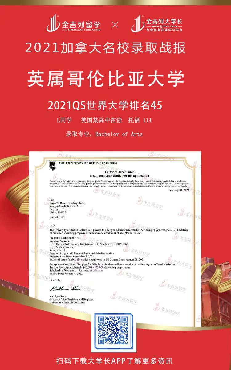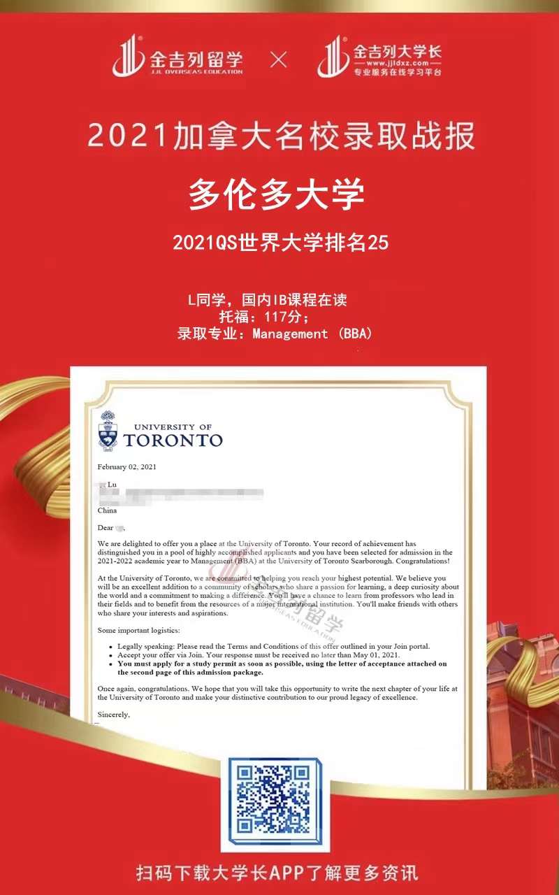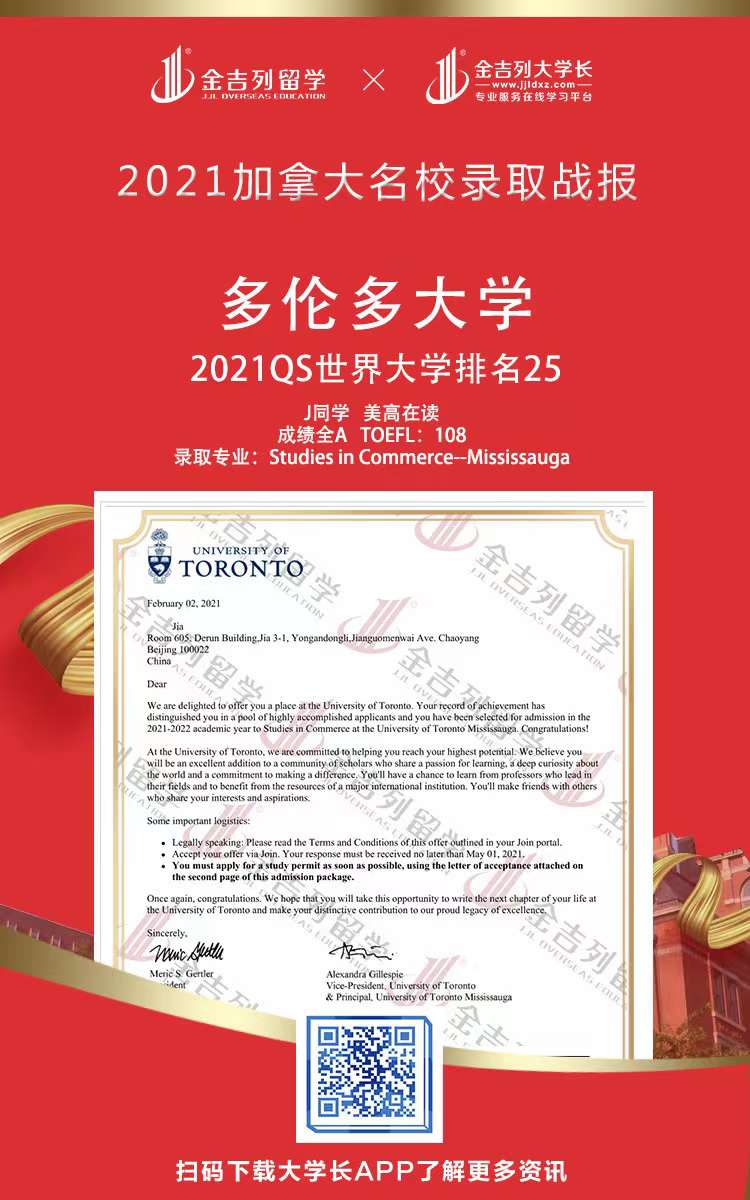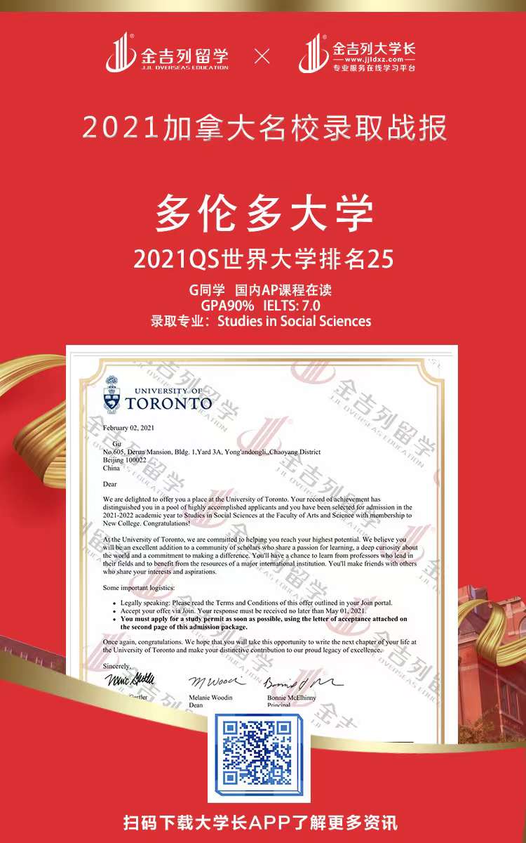 尚书有云:功崇惟志,业广惟勤 。 2021年秋季海外留学申请录取进行时,感谢各位同学和家长的支持、配合、理解和包容,感谢整个申请团队的辛苦付出。 只要你足够优秀,我们会让你更优秀,最后也希望各位同学不负师教,学业有成,事业有成!金吉列留学 录取offer集锦包含了全球名校本科新生、本科转学、研究生、博士申请数据,非高端院校录取数据除外,个人信息部分均已保护。 可供今年和明年申请出国留学的同学参考,世界名校竞争激烈,申请难度大,早准备,早规划,早申请,早录取,结果一定不会差。