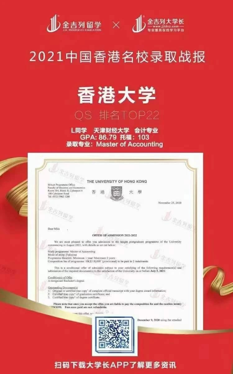 尚书有云:功崇惟志,业广惟勤 。 2021年秋季海外留学申请录取进行时,感谢各位同学和家长的支持、配合、理解和包容,感谢整个申请团队的辛苦付出。 只要你足够优秀,我们会让你更优秀,最后也希望各位同学不负师教,学业有成,事业有成!金吉列留学 录取offer集锦包含了全球名校本科新生、本科转学、研究生、博士申请数据,非高端院校录取数据除外,个人信息部分均已保护。 可供今年和明年申请出国留学的同学参考,世界名校竞争激烈,申请难度大,早准备,早规划,早申请,早录取,结果一定不会差。