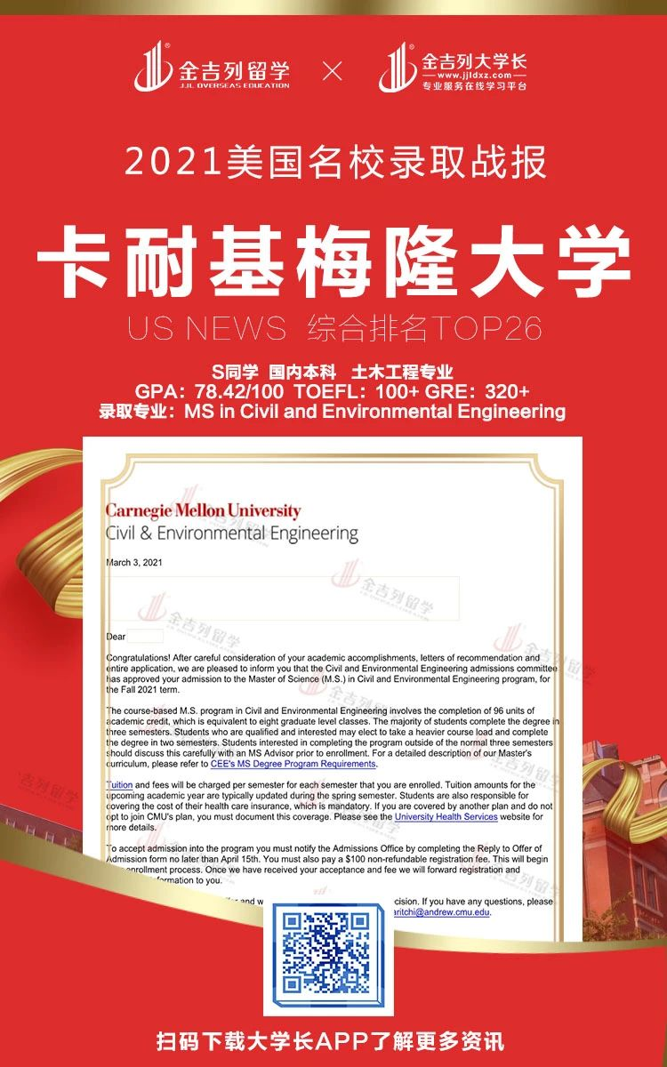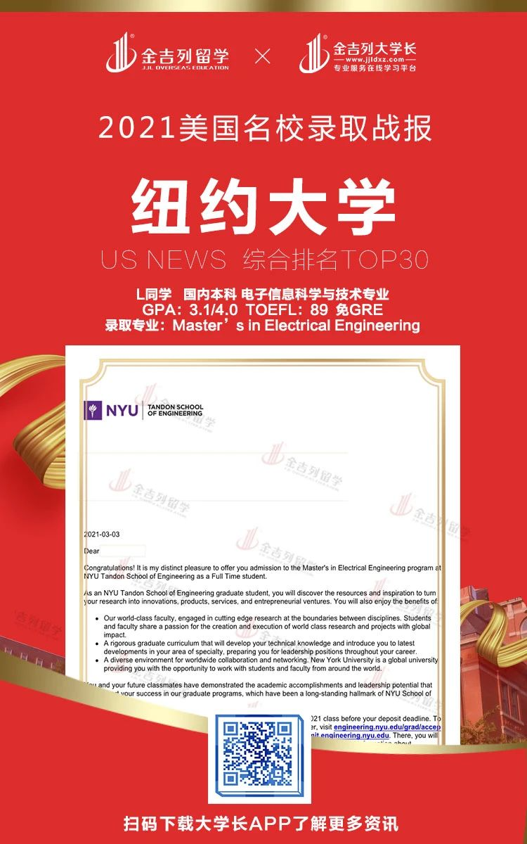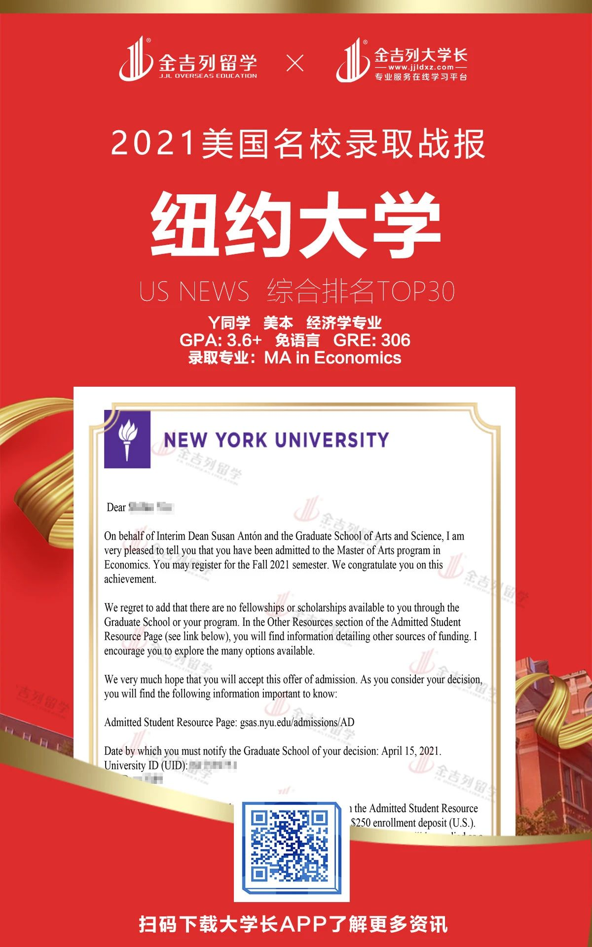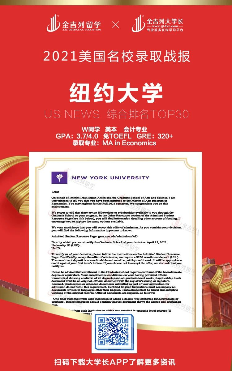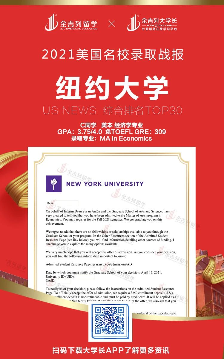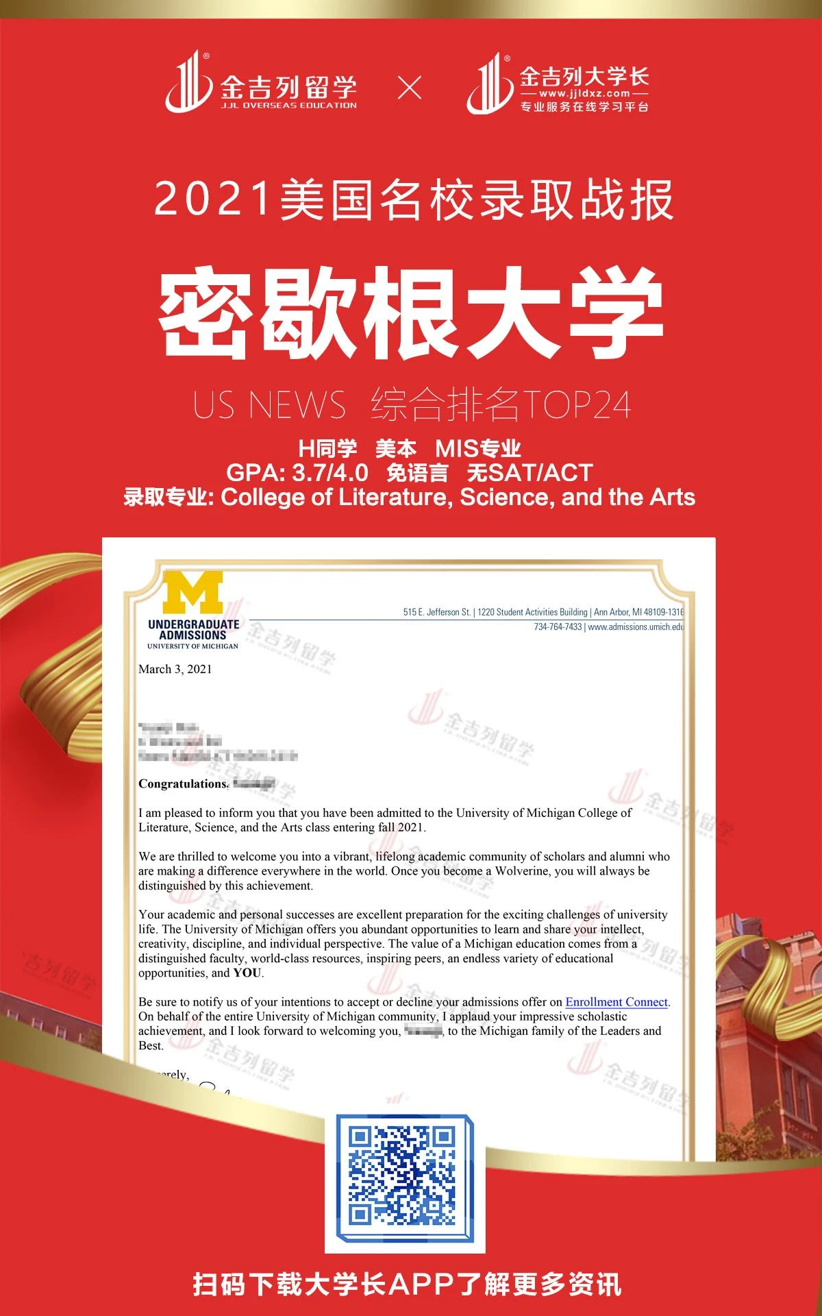 尚书有云:功崇惟志,业广惟勤 。 2021年秋季海外留学申请录取进行时,感谢各位同学和家长的支持、配 合、理解和包容,感谢整个申请团队的辛苦付出。 只要你足够优秀,我们会让你更优秀,最后也希望各位同学不负师教,学业有成,事业有成!金吉列留学 录取offer集锦包含了全球名校本科新生、本科转学、研究生、博士申请数据,非高端院校录取数据除外,个人信息部分均已保护。 可供今年和明年申请出国留学的同学参考,世界名校竞争激烈,申请难度大,早准备,早规划,早申请,早录取,结果一定不会差。