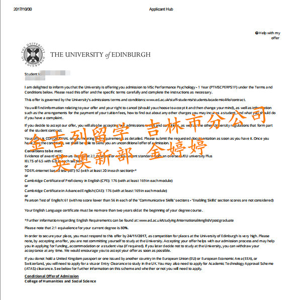 学生背景:211大学,教育学院心理学本科专业,申请时绩点3.27,无雅思