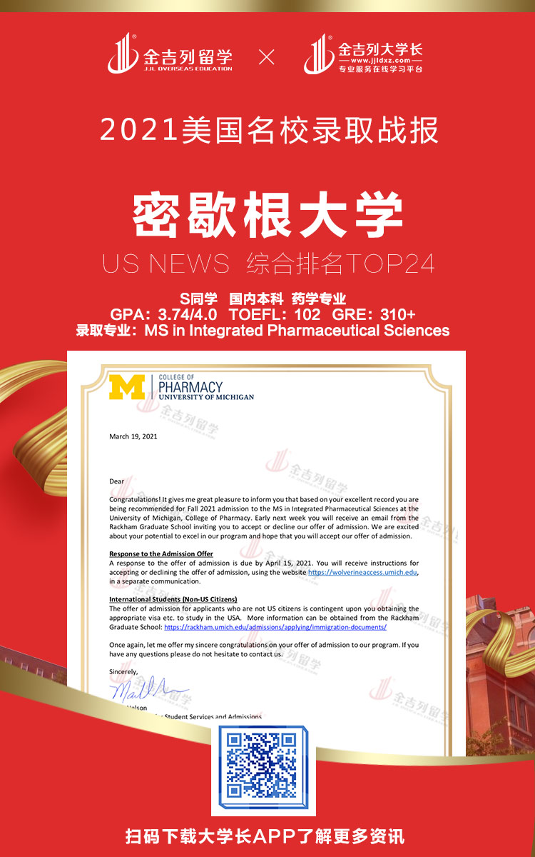 密歇根大学药学专业录取!