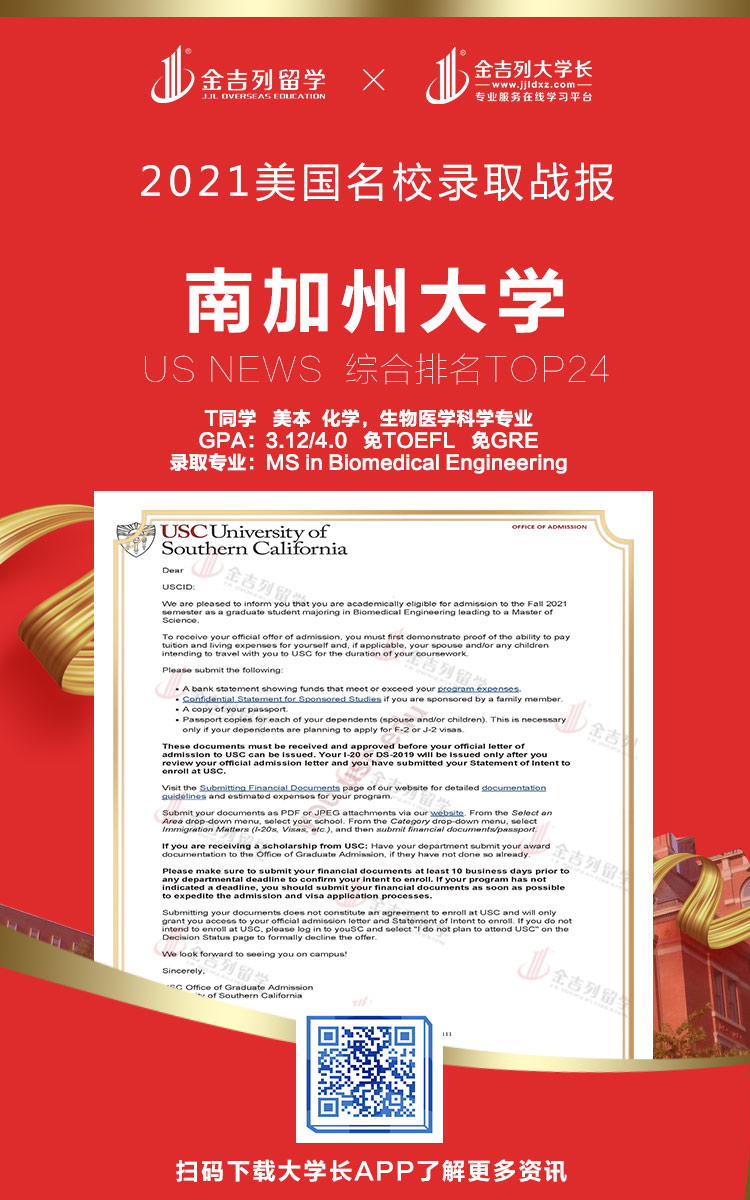 南加州大学生物医学工程专业录取!