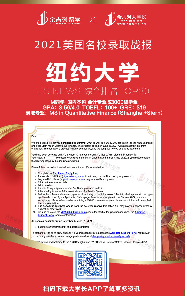 ★ 如想再进一步咨询美国留学申请的同学和家长请拨打电话: 177 1031 1752 (微信同号)即可咨询上海金吉列留学美国部首席顾问何青老师 !