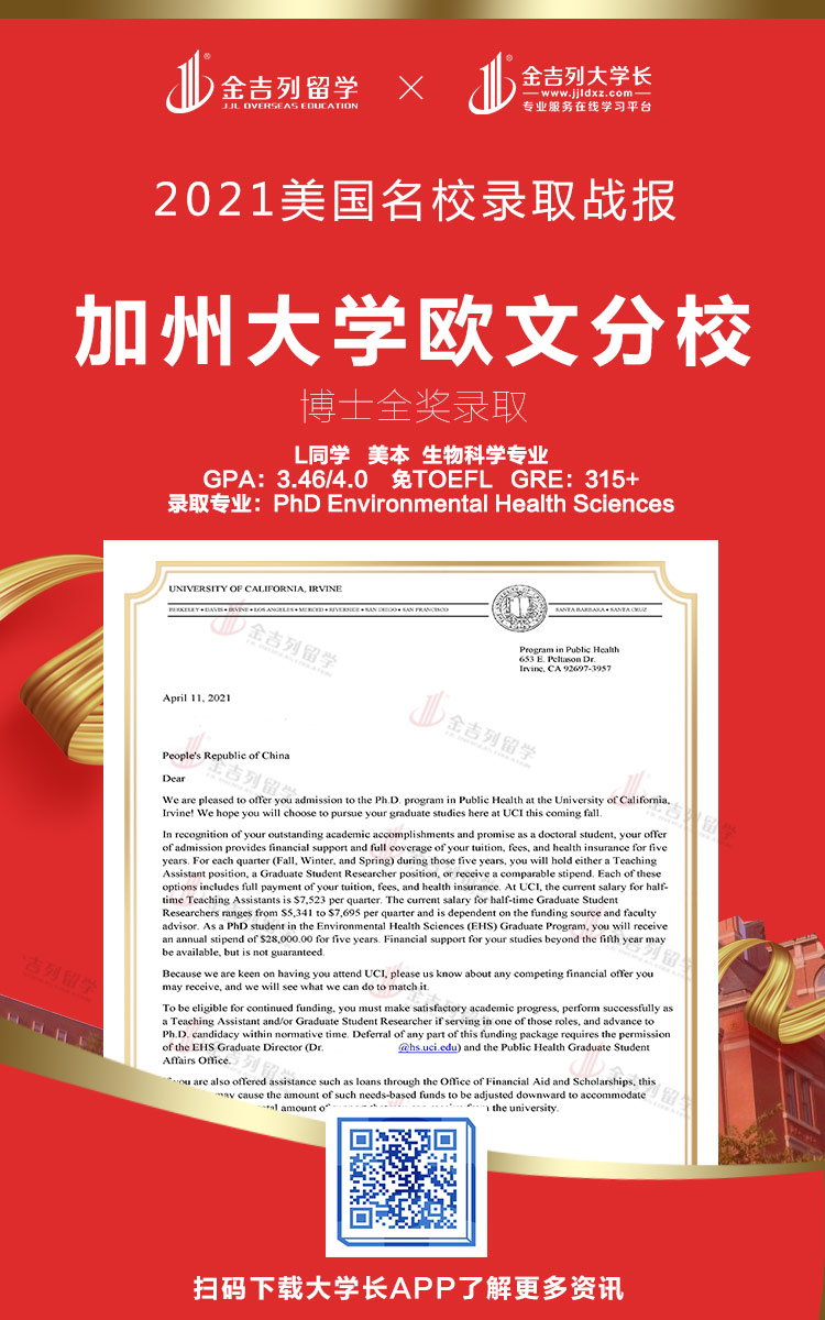 UCI-环境卫生科学博士全奖录取!