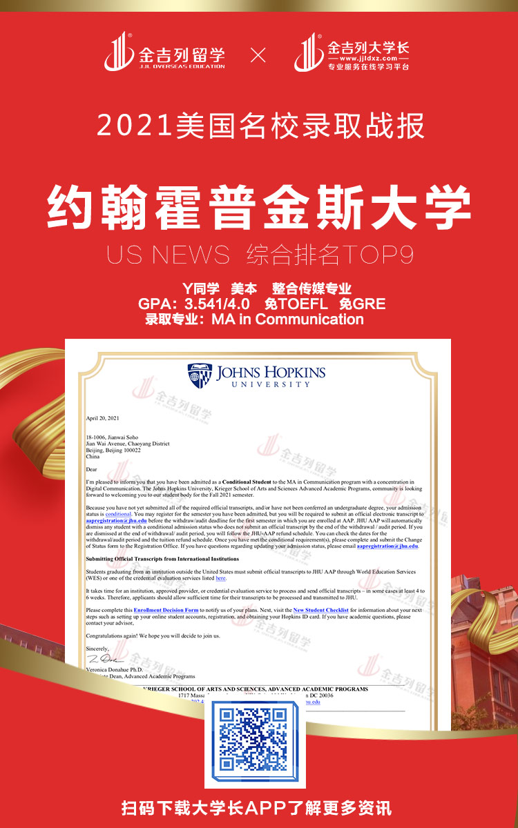 JHU3.54传播学(免G)录取!