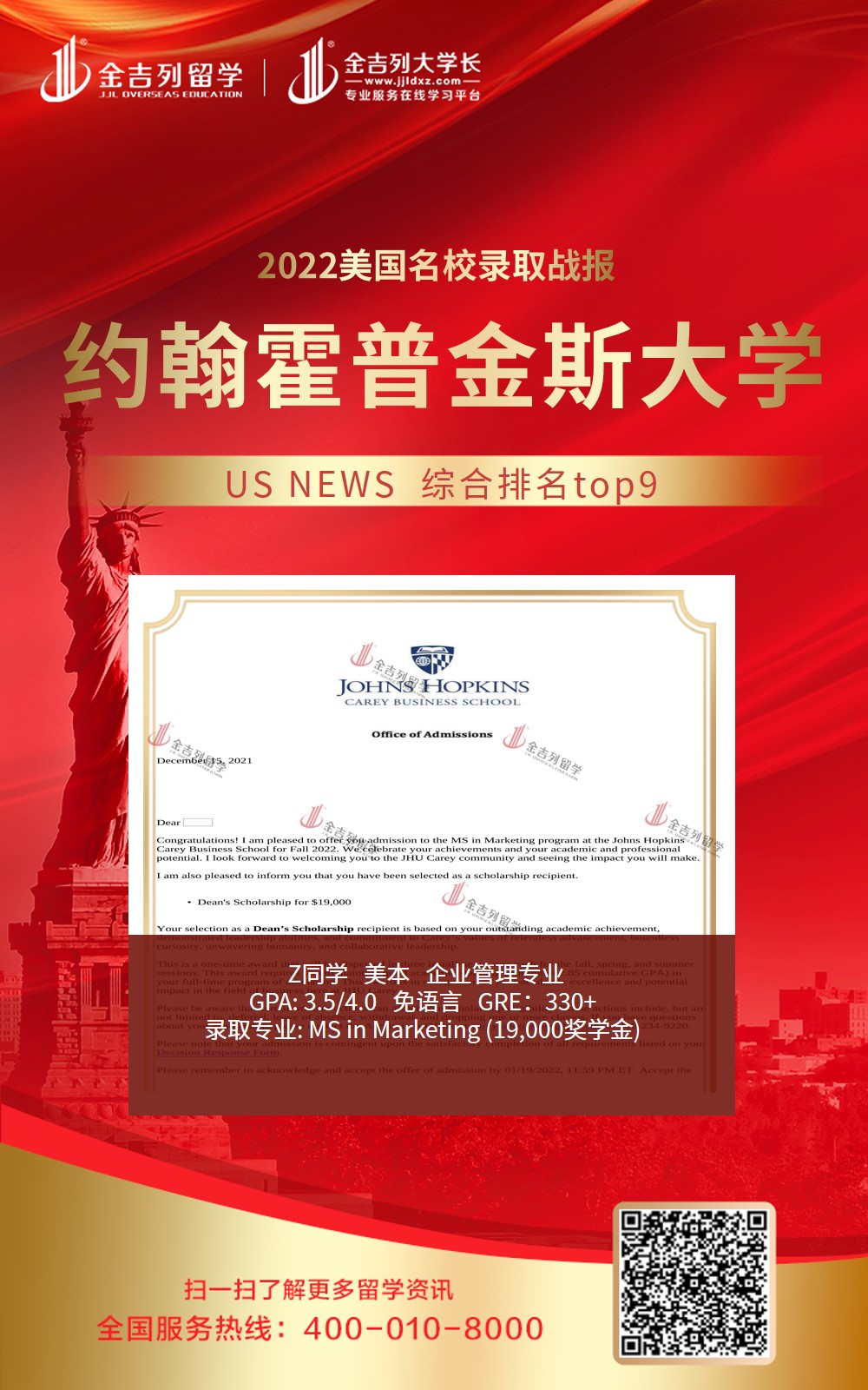 约翰霍普金斯大学19000美学金硕士录取!