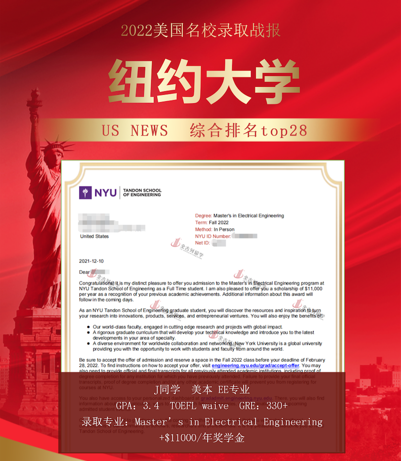 纽约大学电气工程11000美金奖学金录取!