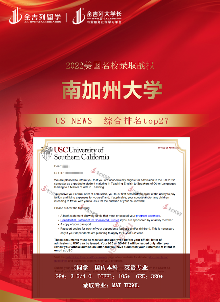 USC南加州大学TESOL专业录取!