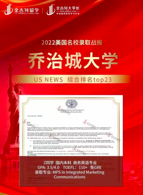 案例:Z同学,国内双非本科,商务英语专业,GPA3.5,托福110+,免GRE