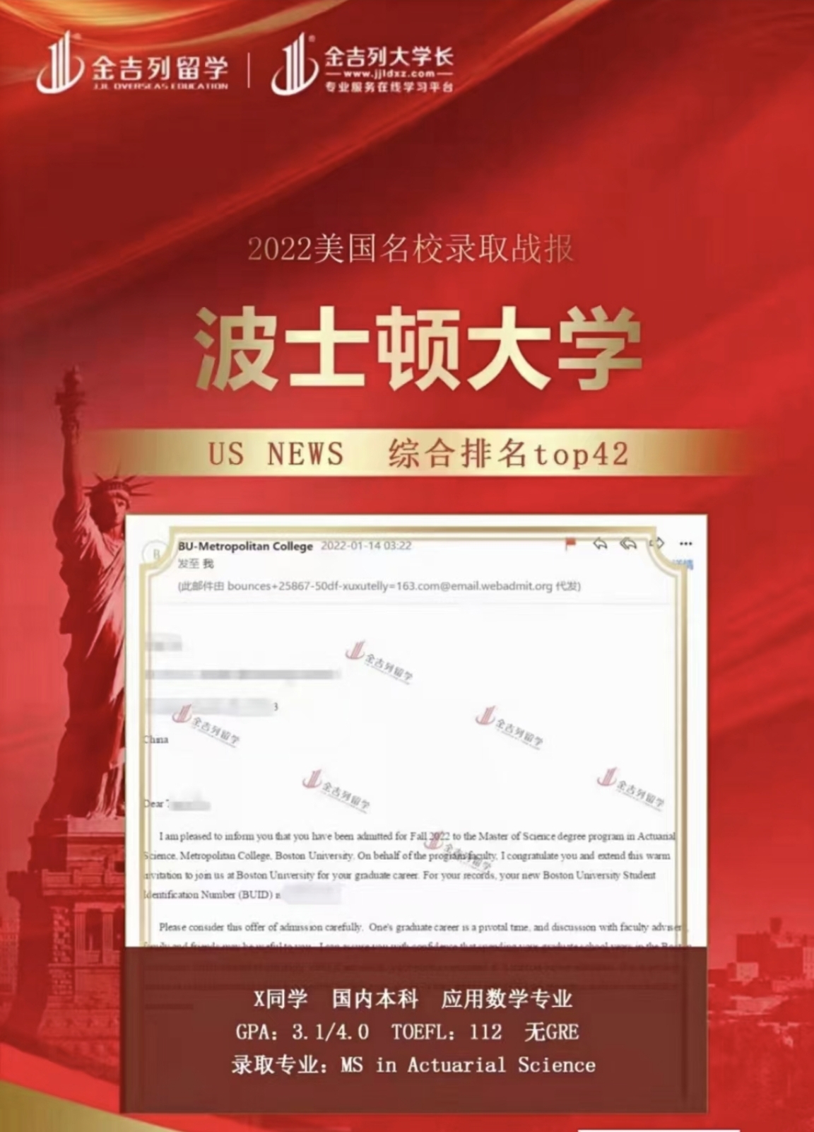今天古老师就来为大家分享一个2022年入学季新鲜出炉的波士顿大学精算专业研究生录取案例!