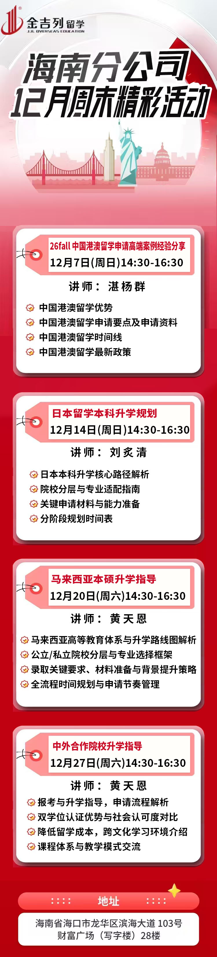 金吉列留学海南分公司12月精彩活动预告