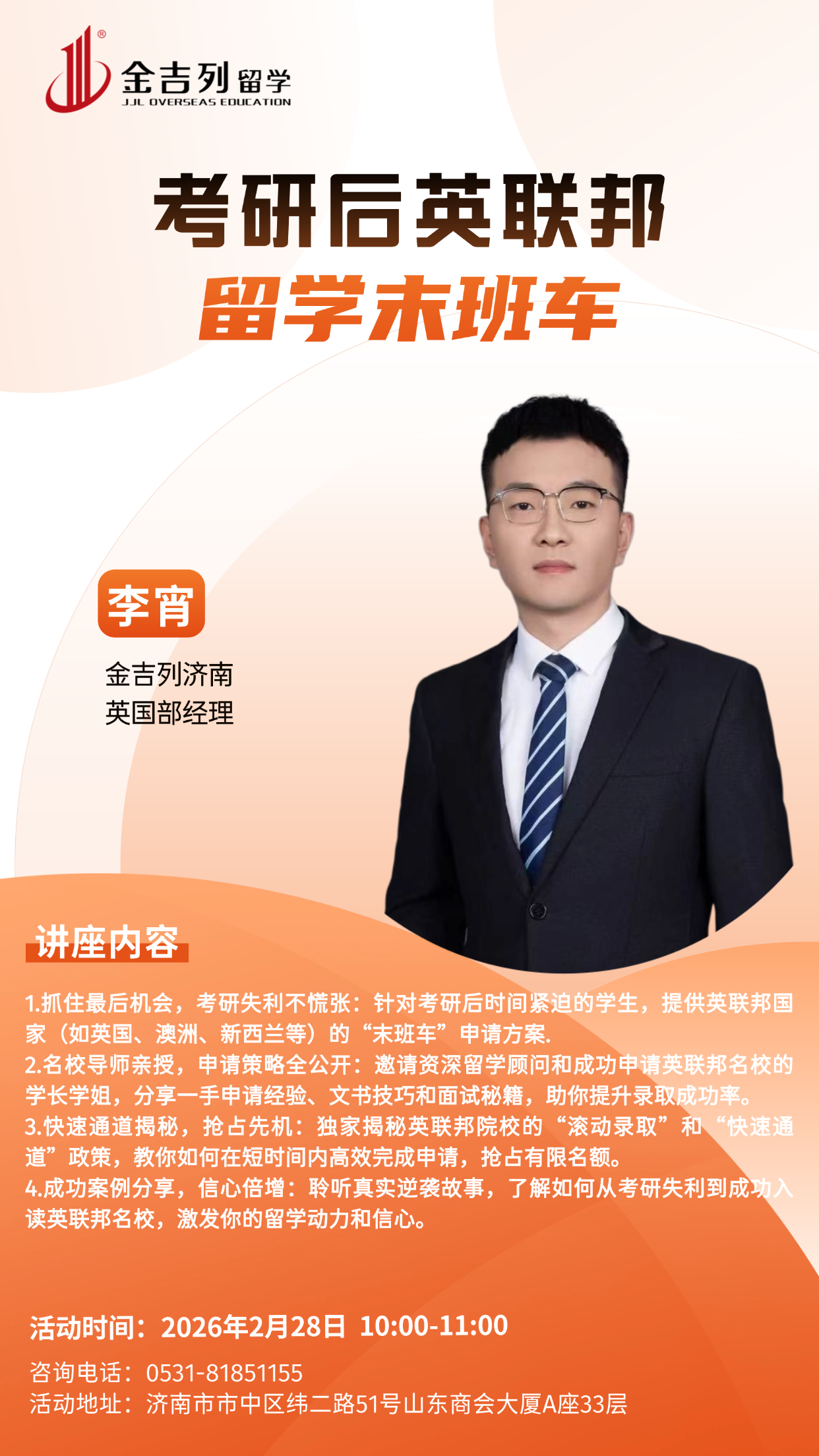 讲座地点: 济南市市中区纬二路51号山东商会大厦A座33层