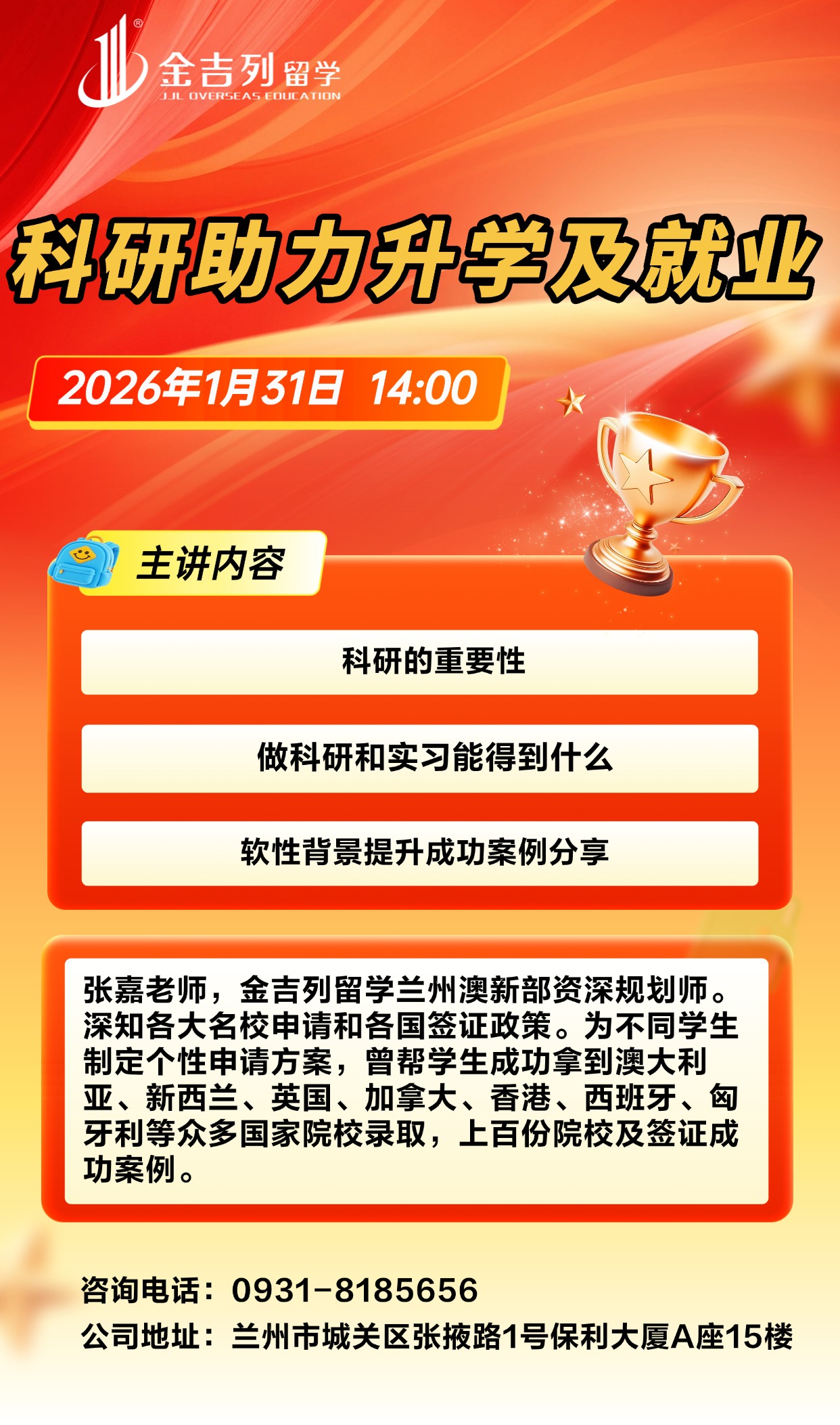 讲座地点: 兰州市城关区张掖路1号保利大厦A座15楼