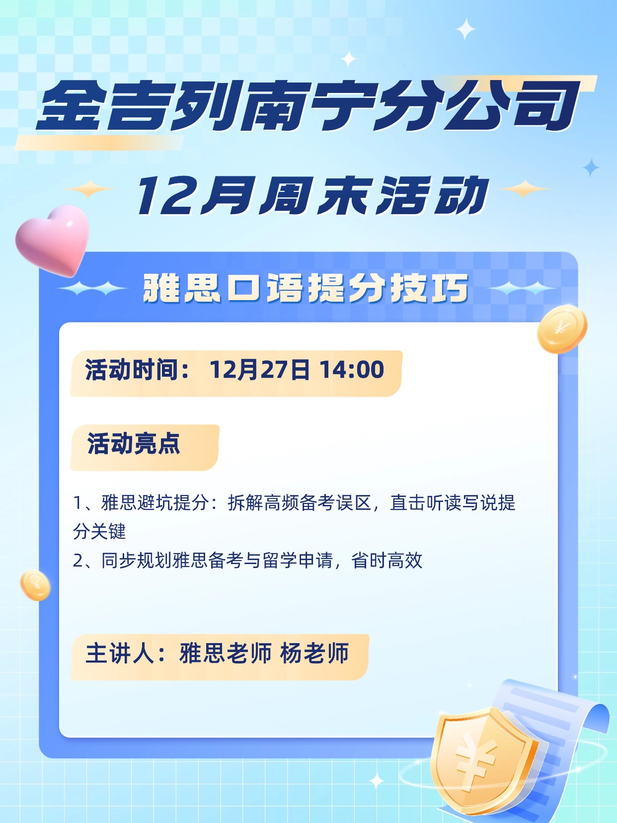 活动地址:金吉列留学南宁分公司(南宁市青秀区地王大厦30层CD)
