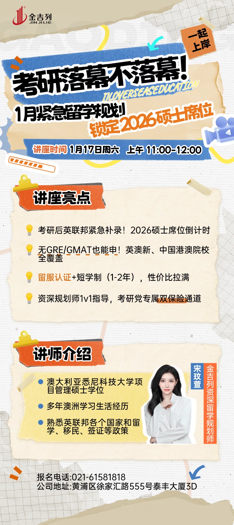 2026硕士席位倒计时;无GRE/GMAT申请英澳新;