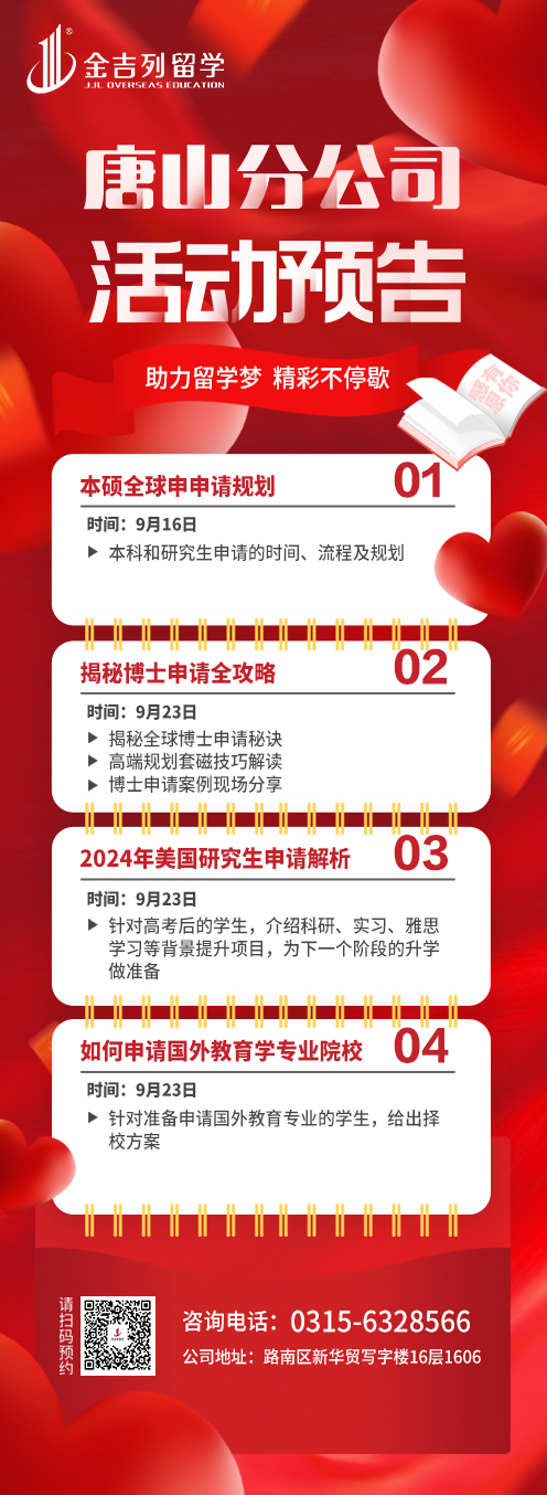 金吉列留学唐山分公司近期推出了一系列周末活动,欢迎各位学生及家长参加!