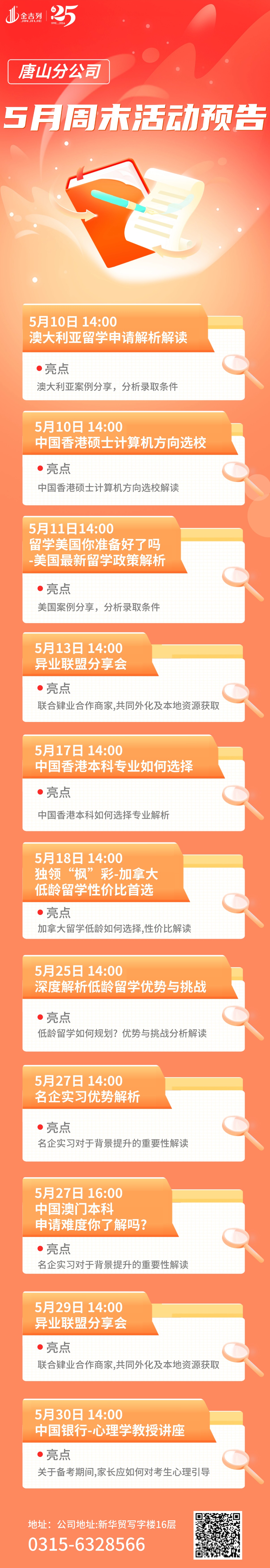 金吉列留学唐山分公司近期推出了一系列周末活动,欢迎各位学生及家长参加!
